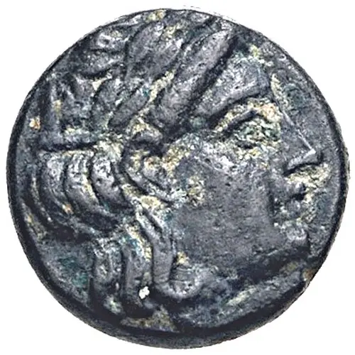 توضیحات روی سکه Laureate head of Apollo right