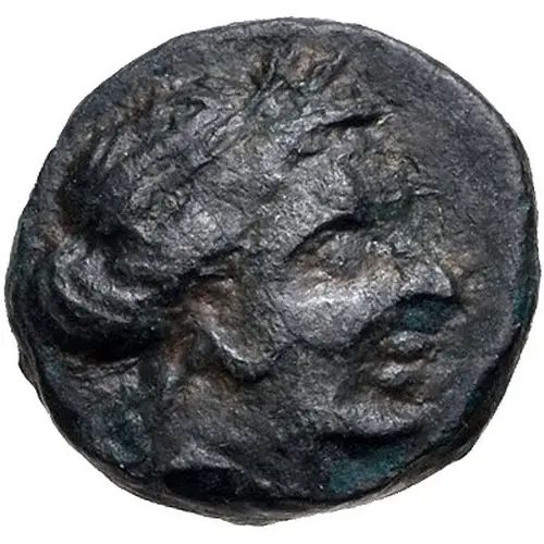Reverse description Laurel branch with fillet hanging below. ΑΛΕΞ above, Σ-Κ-V below