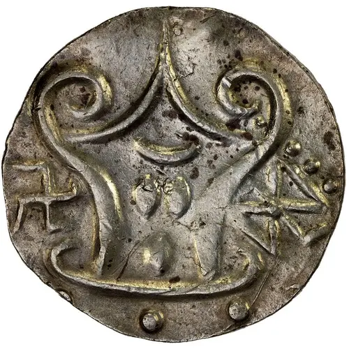 | Obverse description | Srivatsa symbol with inverted swastika to left, bhadrapitha to right, three pellets below. |
