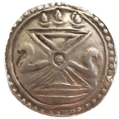 | Aversbeschreibung | The obverse of the Sriksetra coin bears the `Bhadrapitha Throne` or throne stool, with three lanterns above. Hailin derivative of the Sri-Ksetra coin. |