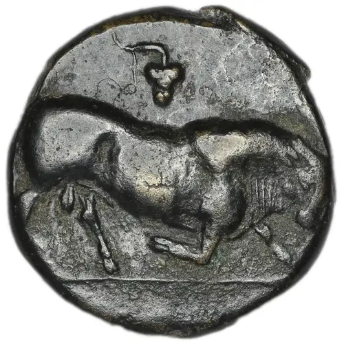 توضیحات روی سکه Bull butting towards right. Grapes above it.