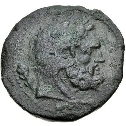 | Descripción del anverso | Head of Herakles right, wearing lion skin, club over shoulder. |