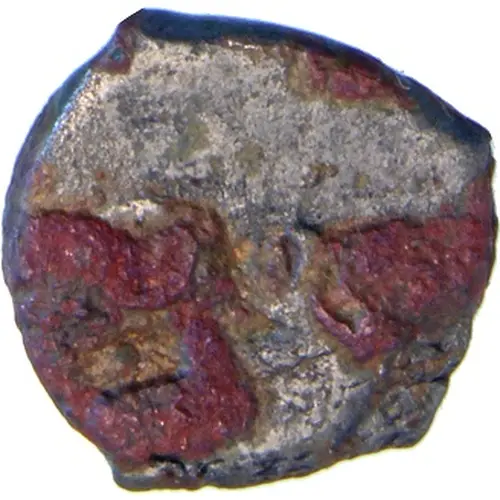 | Popis rubu | Spear or trident with axe on shaft at left, Railed tree and indistinct symbol, Brahmi legend below: navasa, ladder symbol below that |