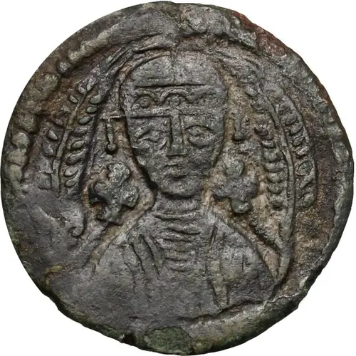 | Popis líce | Bust draped in front, wearing a crown adorned with a cross; flanked by two ears of wheat, from the winning base spring two stems ending in a cross. |