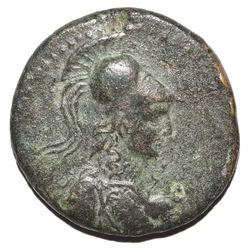 | Mô tả mặt trước | Draped and helmeted half-length bust of Athena right, with aegis. |