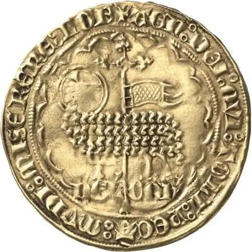 | Descripción del reverso | Floriate triple cross with rose at center and eagles in angles, within quadrilobe with points, trefoils in exterior angles. |