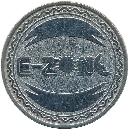 | Reverse lettering | E-ZONE * TOKEN * NO CASH VALUE * FOR AMUSEMENT USE ONLY * E-ZONE |