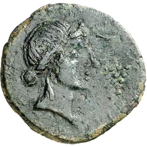 | Aversbeschreibung | Female head facing right. Bunch of grapes to the right. |