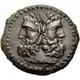 | Opis awersu | Laureate and bearded head of Janus; border of dots. |