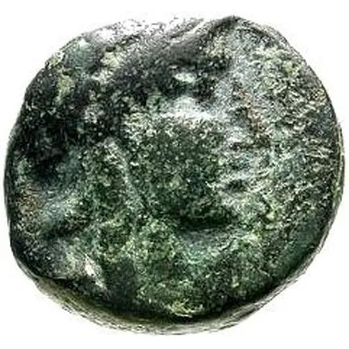 | Descrizione del rovescio | Coiled serpent, head raised right. Very thick chunky flan with clear legends. M in left field |