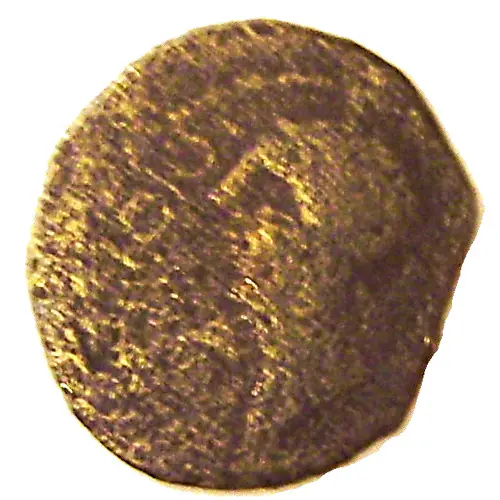Opis rewersu Boar-sign on the right; below, a flower; above, the remains of a dextrorotatory triskelion.