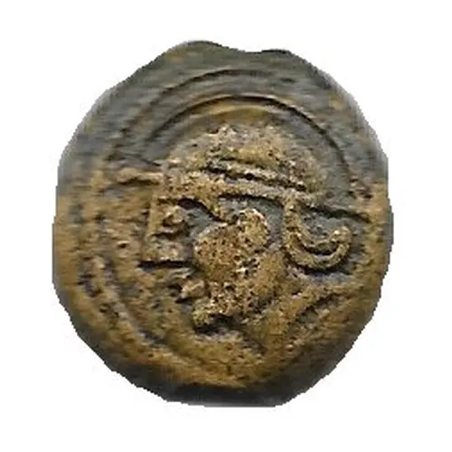 | Descrição do anverso | Helmeted head facing left; beaded circle. |