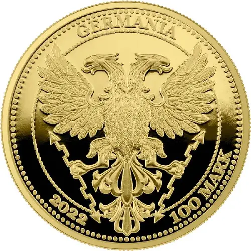 Script: Latin Lettering: GERMANIA 2022 100 MARK Reverse Linden leaf. To the left, flower. Above, inscription. Script: Latin Lettering: •LINDEN LEAF• •1 oz 999.9 FINE GOLD• Edge Reeded Mint Germania Mint, Jelenia Góra, Poland (2018-date) |