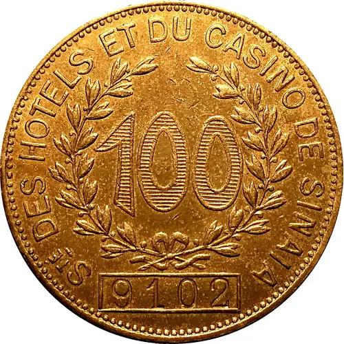 | Légende de l’avers | STE DES HOTELS ET DU CASINO DE SINAIA 9102 (Translation: Sinaia Hotels and Casino Society) |