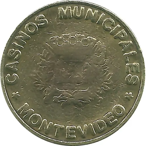 | Opis awersu | Montevideo coat of arms at center, surrounded by `CASINOS MUNICIPALES * MONTEVIDEO *` caption. |