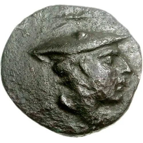| Ön yüz açıklaması | Head of Hermes facing right, wearing a petasos and with a thunderbolt above |