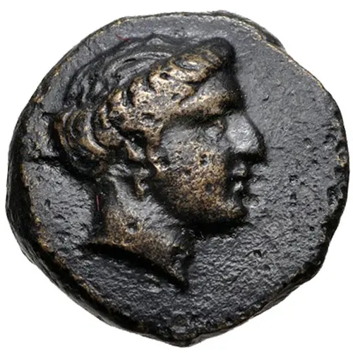 | توضیحات روی سکه | Head of the nymph Lamia facing right, wearing an earring and a necklace |