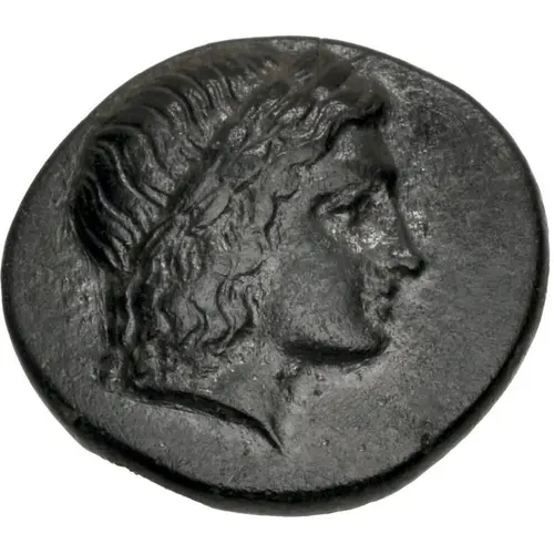 | Описание аверса | Laureate head of Apollo right. |