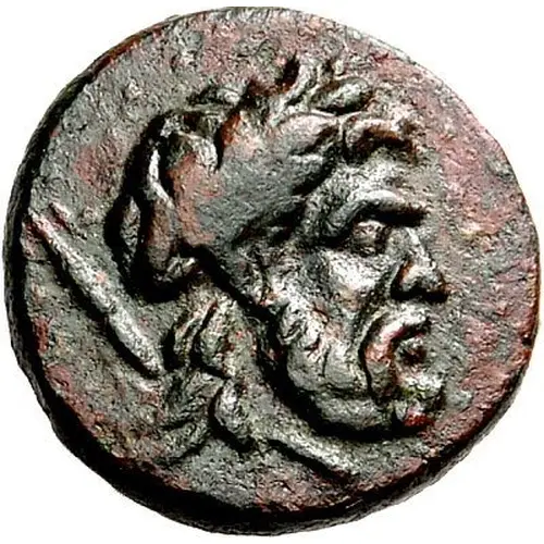 | Obverse description | Laureate and bearded head of Zeus to left |
