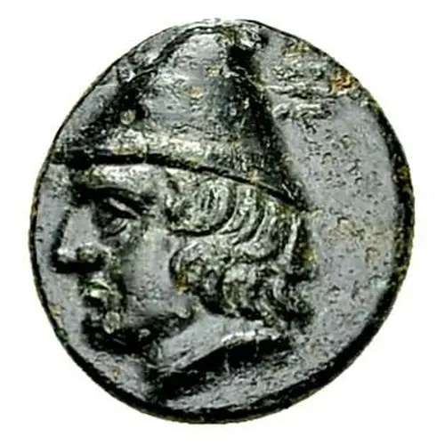 | Popis líce | Non-bearded bust of Kabeiros wearing pileus, facing left |