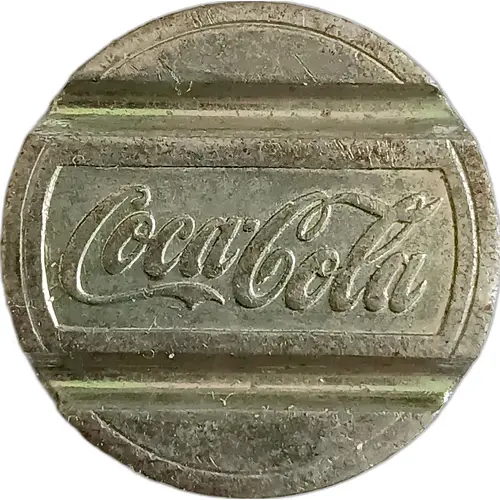 Due scanalature con al centro il logo Coca Cola in rilievo su un rettangolo arrotondato in incuso. Two grooves with the Coca Cola logo in relief in the center on a rounded rectangle incuse. |