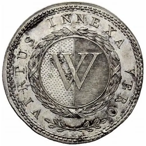 | Mô tả mặt trước | Coat of Arms of Vevey surrounded by a laurel wreath. Crossed oak branches below. |