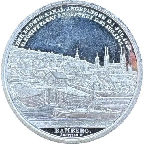 | Obverse lettering | DER LUDWIG-KANAL ANGEFANGEN D.1 JUL.1836. D.SCHIFFFAHRT EROEFFNET D.25 AUG.1845. BAMBERG RABAUSCH F. |