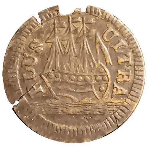 Aversbeschreibung Ship to the left, legend above.