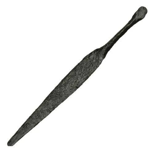 | توضیحات روی سکه | Undecorated wide, tapering blade with a long pinched area, resembling a leaf. |