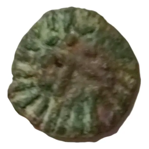 | Obverse description | Barbarized head of Roman emperor facing right, hair in form of crescents, two lines under angle in the middle, rays ending with dots above behind and below head. |