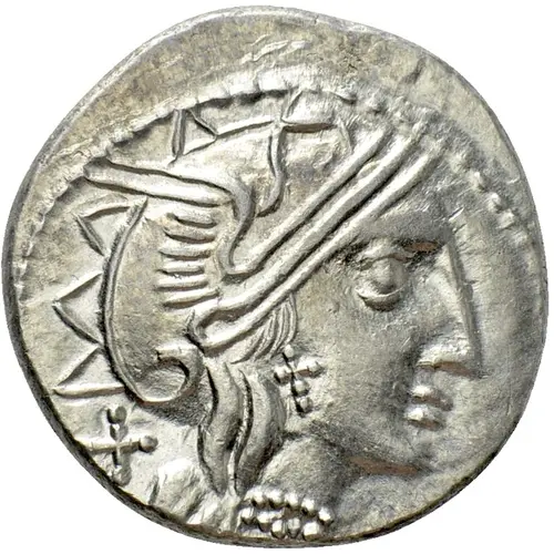 | Obverse description | Helmeted head of Roma right; X (mark of value) to left. |