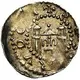 | Reverse description | Building with two towers within beaded circle. |
