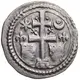 Rimmed double cross, two crowned heads facing each other at base, mintmark on two sides above. On top star with a dot on the left, crescent with a dot on the right. Double lily mintmark |