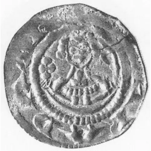 | Reversbeschreibung | Crowned bust facing, holding scepter in left hand and cross-tipped staff in right. |