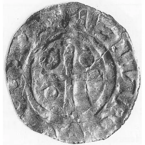 | Descrizione del dritto | Cross cantoned by two bezants and an annulet, legend all around. |