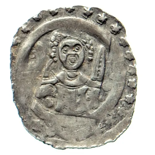 | Description de l’avers | Frontal bust of a bareheaded duke, holding an upraised sword in each hand. bulge circle, asterisk border. |