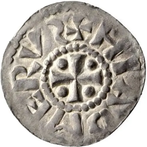 | 表面の説明 | Cross within beaded circle with dots in corners, legend surrounding. |