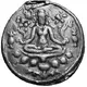 | Reverse description | Lakshmi seated facing on a single lotus, holding a lotus plant in each hand, fl anked on each side by a sacred vessel, purna ghata. In top left field: Sri. |