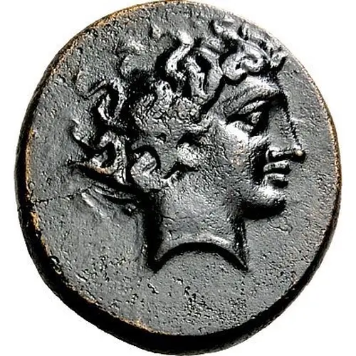 | توضیحات روی سکه | Male head right, with very curly hair, depicted as if floating |