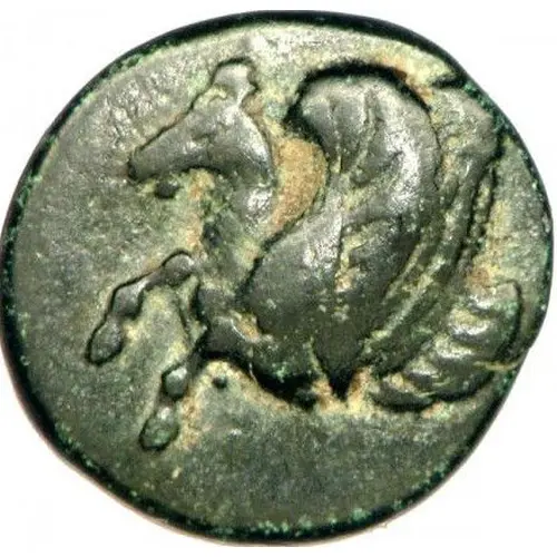 | Aversbeschreibung | Forepart of Pegasos, left, with Rhyton |