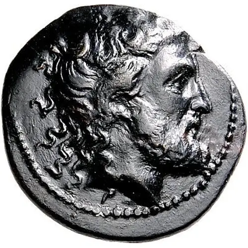| Mô tả mặt trước | Bearded head of Atrax to right |