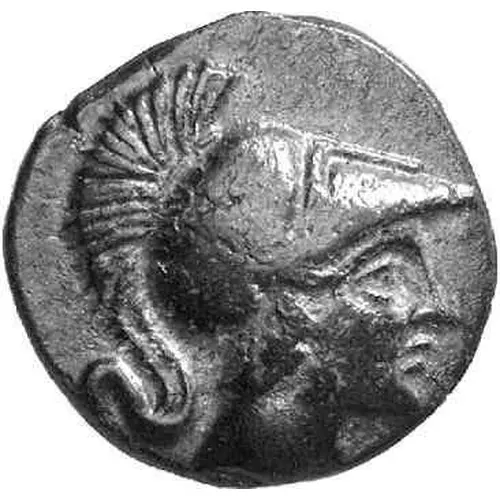 | توضیحات روی سکه | Head of Athena Alea to right, wearing Corinthian helmet. |