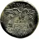 Mô tả mặt sau Eagle landing right on maeander pattern; star above, pileoi of the Dioskouroi to left and right.