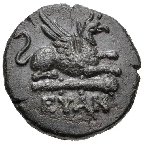 | Popis líce | Gryphon crouching right on club with the name of the magistrate below |