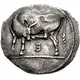 | Descripción del anverso | Cow standing left, head facing right and scratching his head with its hind foot, with the letter E below. |