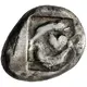 | Popis rubu | Silphium fruit (seed pod?) between two dolphins swimming around it to right and all within incuse square |
