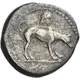 | Descrição do anverso | Hound standing right, lowering head to ground. Above, small female head facing right. |