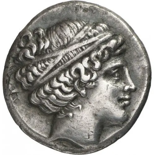 | Obverse description | Head of female (Artemis?) right, hair tied over head with ribbon wrapped three times. |