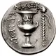 | Reverse description | Wreathed krater on a high foot with low handles. To right, thyrsos |