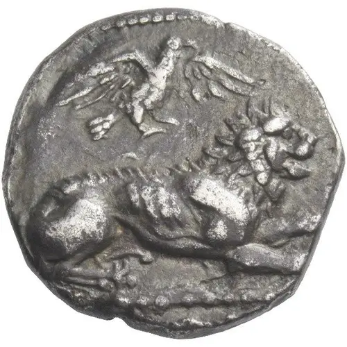 | Aversbeschreibung | Lion recumbent right; above, eagle, with spread wings, flying right; in exergue, Cypriote legend. |